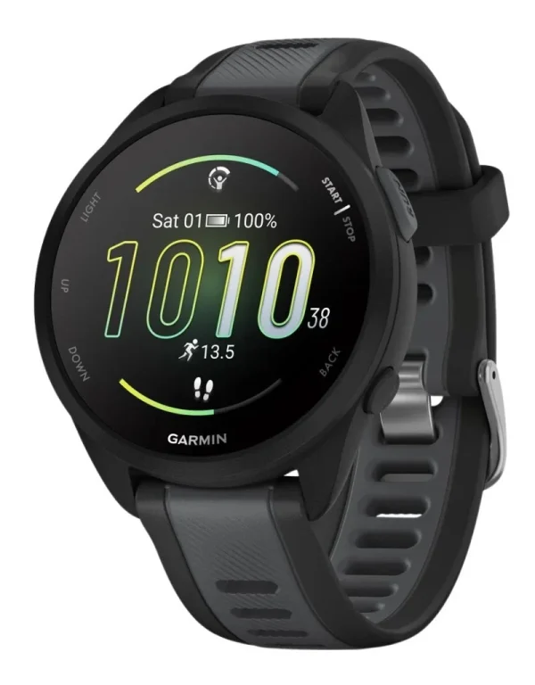 Enjoy comfortable wear with the lightweight Forerunner 165 Music design. This watch features a clear, sunlight-readable display. The Forerunner 165 Music band provides secure fit during running sessions.